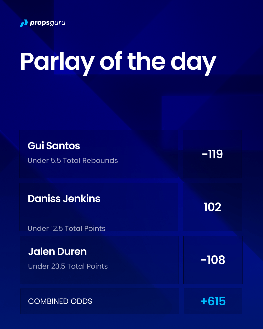 We’ve got a three legged parlay with +615 combined odds.
