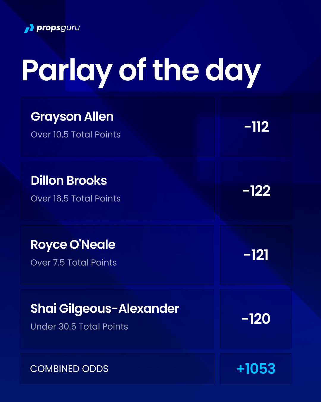 We’ve got a four legged parlay at +1053.