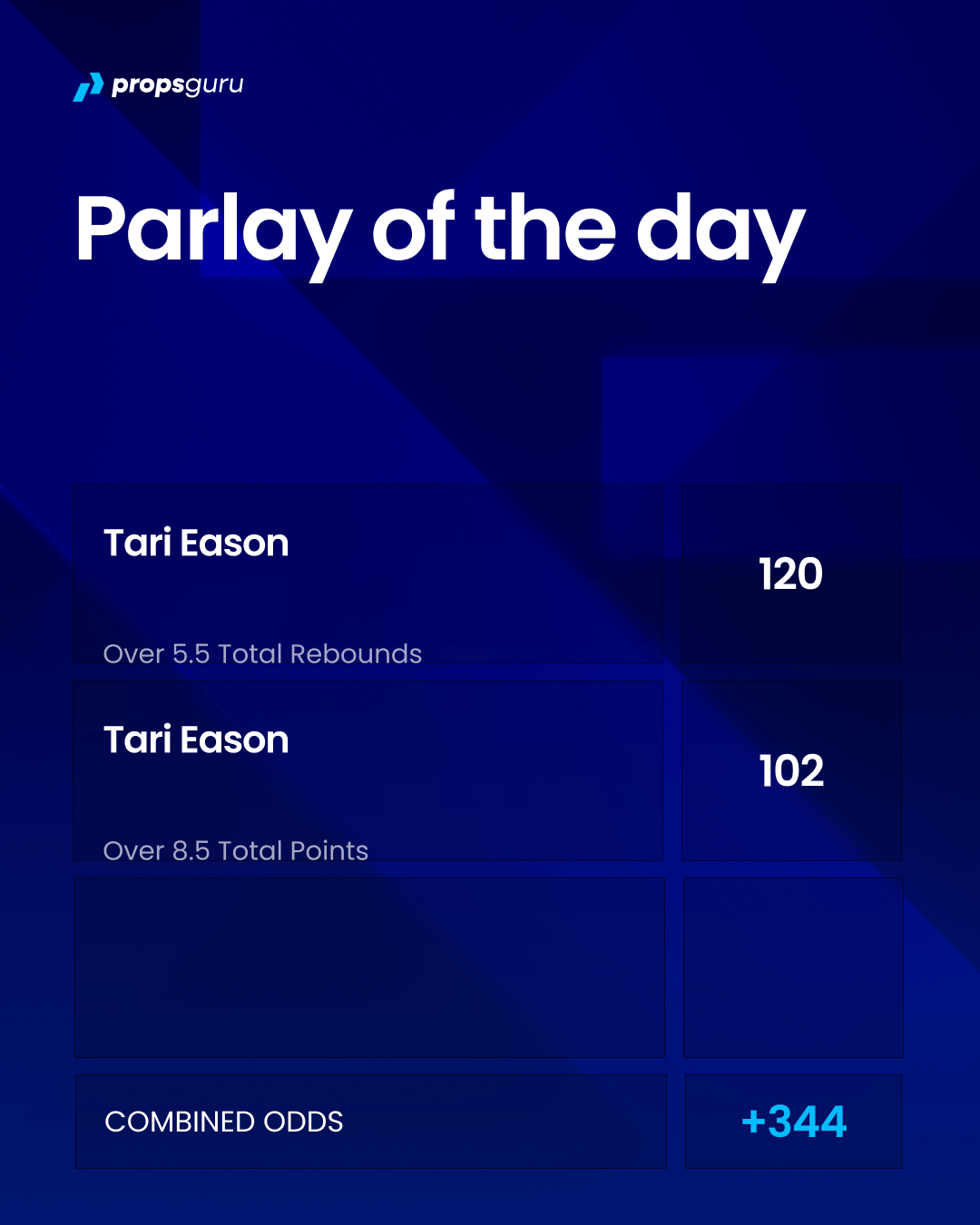 All we need is a normal night out of Tari Eason. He averages 10 points and 6 rebounds. Still a far cry from a sure thing, but comfortingly straightforward in the volatile world of parlay betting.