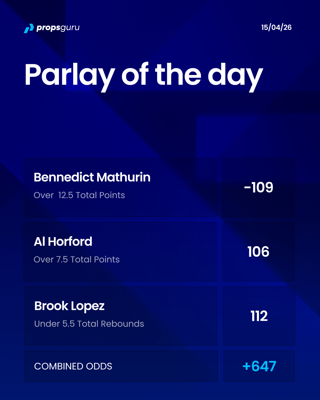 We’ve got a three legged parlay at +647.