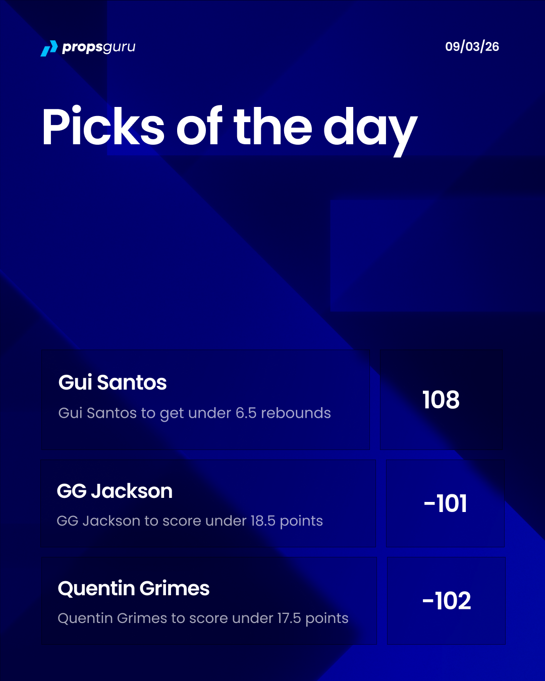 We’ve won and lost betting on Gui Santos in the past. He’s tricky, nabbing 11 rebounds one night, and only 2 the next. He averaged 5.7 in February, making tonight’s pick plausible.