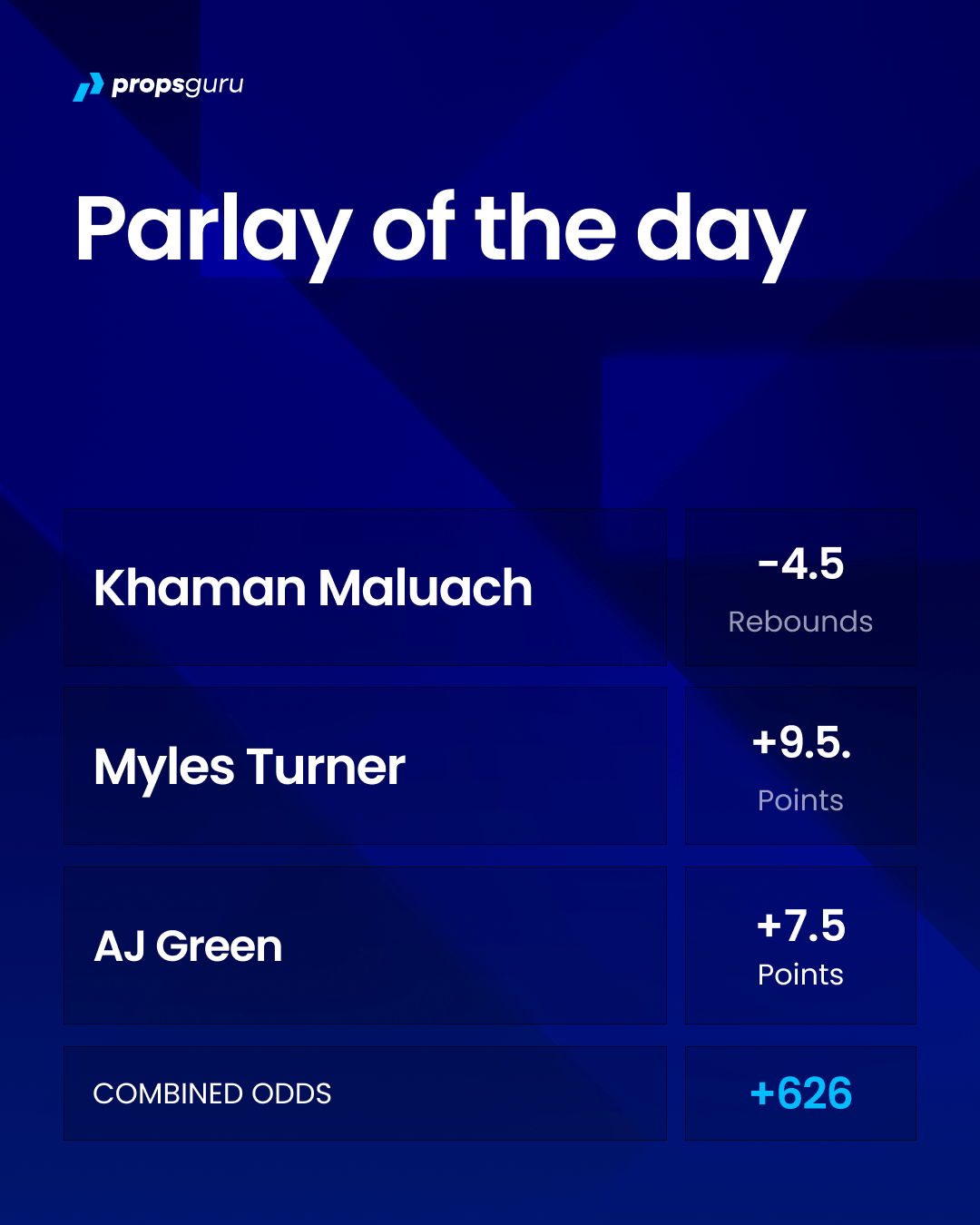 We’ve got a three legged parlay with +626 combined odds.
