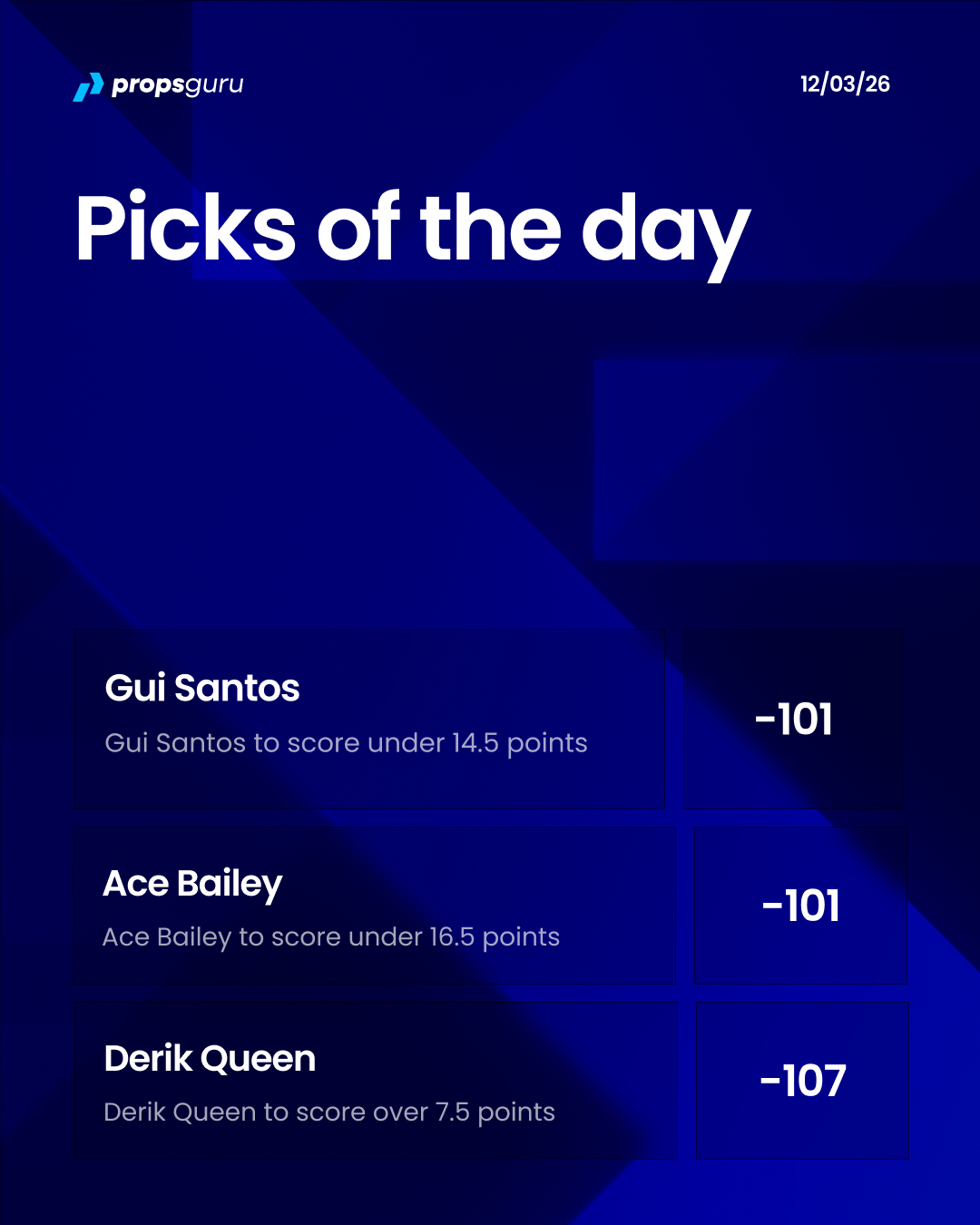 Gui Santos averages 7 points, but can be considerably more productive on the offensive end. In fact, he’s scored 15+ points in four of his last five games, making this line a little tricky.