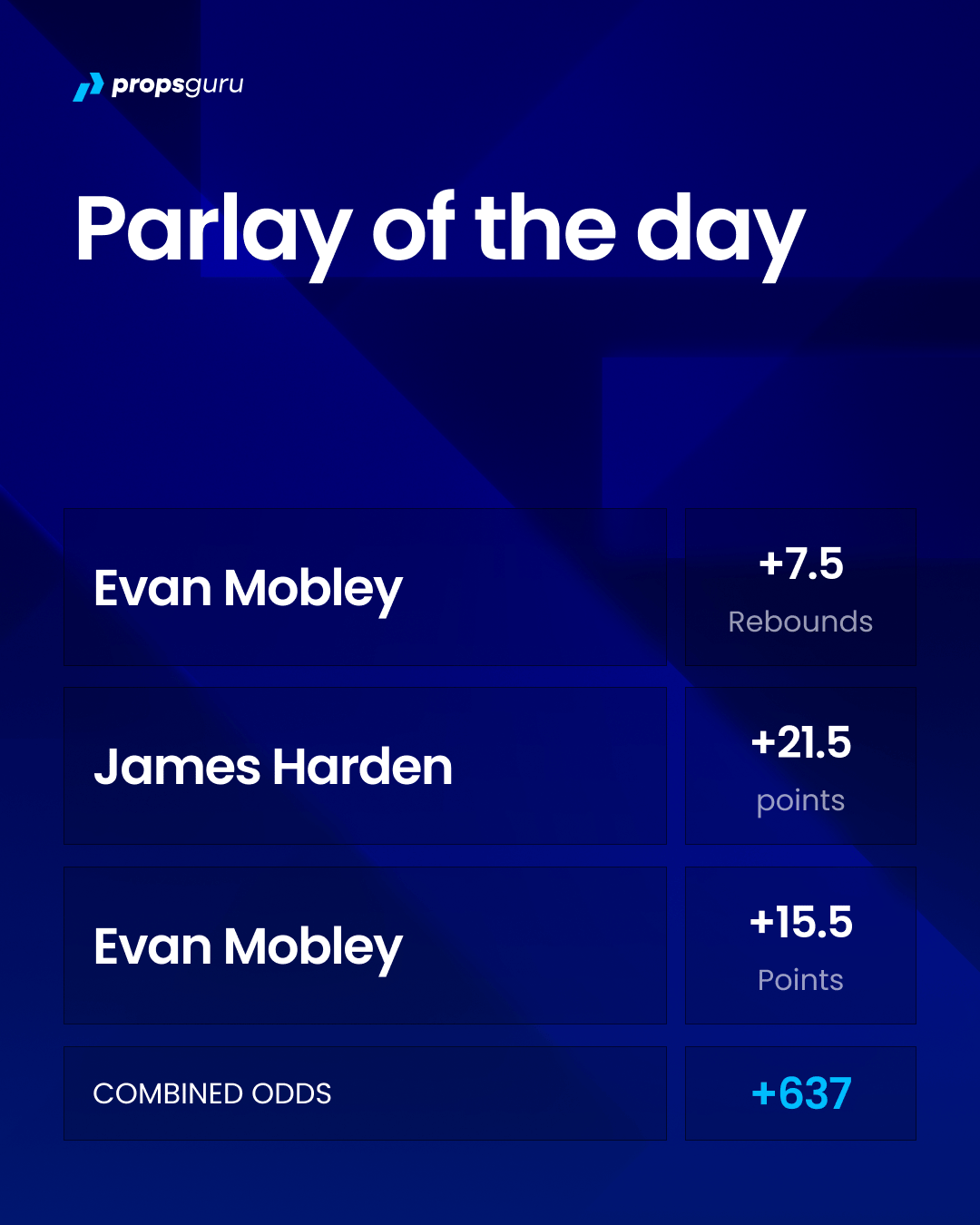We’ve got a three legged parlay with +637 combined odds.