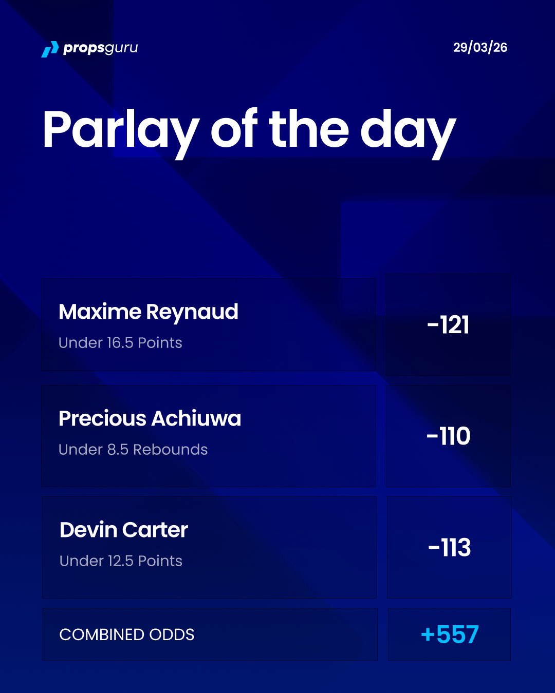 We’ve got a three-leg parlay at +557.